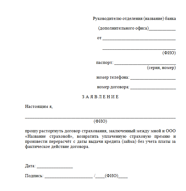 Нужно помнить, что с юридической точки зрения договор страхования вы заключаете не с банком, а с соответствующей страховой компанией, обращает внимание Александров. Поэтому заявление об отказе от страховки необходимо подавать в указанную страховую компанию.