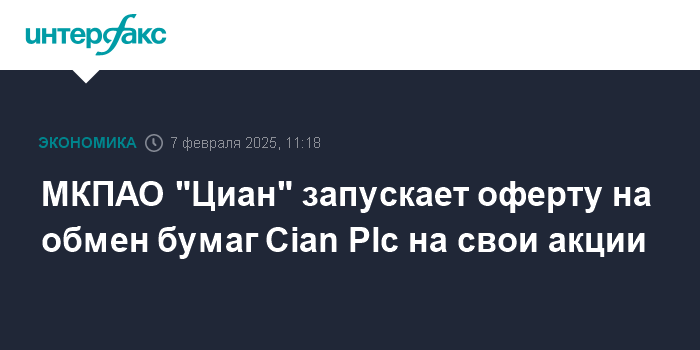 Сервис объявлений о недвижимости «Циан» 7 февраля запускает оферту для держателей акций и ADR кипрской Cian Plc...