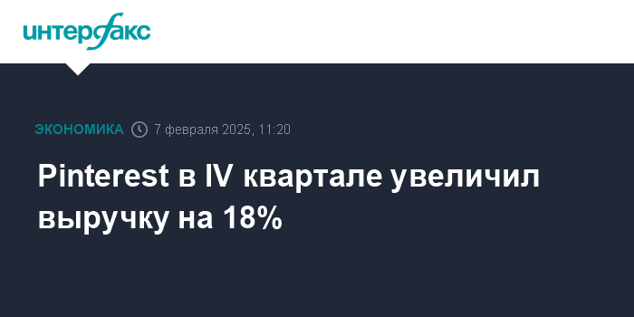 Американская Pinterest Inc., владеющая популярным интернет-сервисом визуальных закладок, в четвертом квартале 2024 года увеличила выручку на 18%....