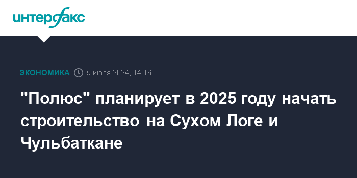 Золотодобытчик «Полюс» планирует в 2025 году начать строительство на двух крупных greenfield-проектах: Сухой Лог в Иркутской области...