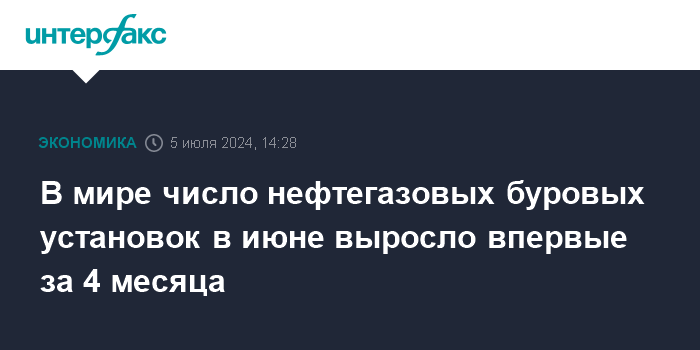 Число действующих нефтяных и газовых буровых установок в мире в июне увеличилось впервые за четыре месяца, сообщила...