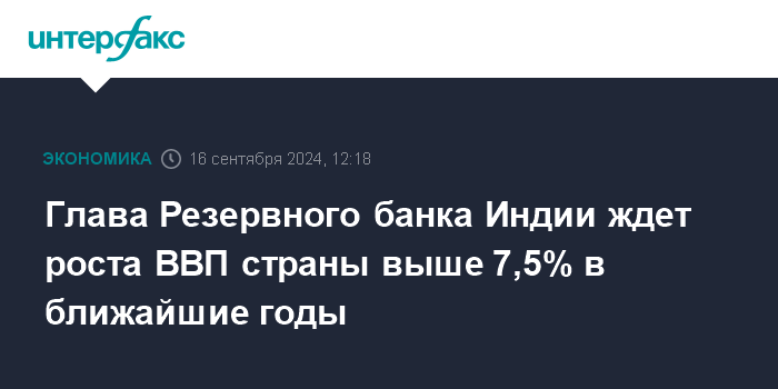 Рост экономики Индии будет превышать 7,5% в ближайшие несколько лет, полагает глава Резервного банка Индии Шактиканта Дас....