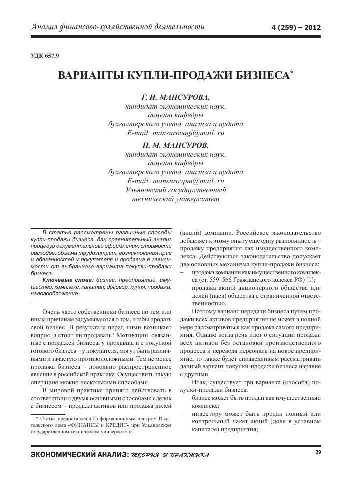Законодательство о продаже бизнеса Гражданский кодекс Российской Федерации (ГК РФ) Глава 30 «Купля-продажа» Статьи 454-503 посвящены общим...